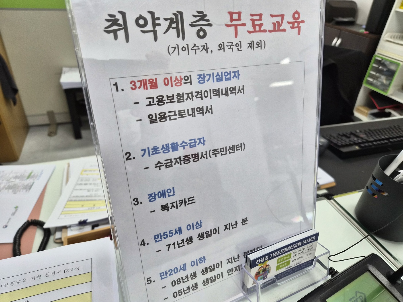 무료교육 대상자와 준비서류